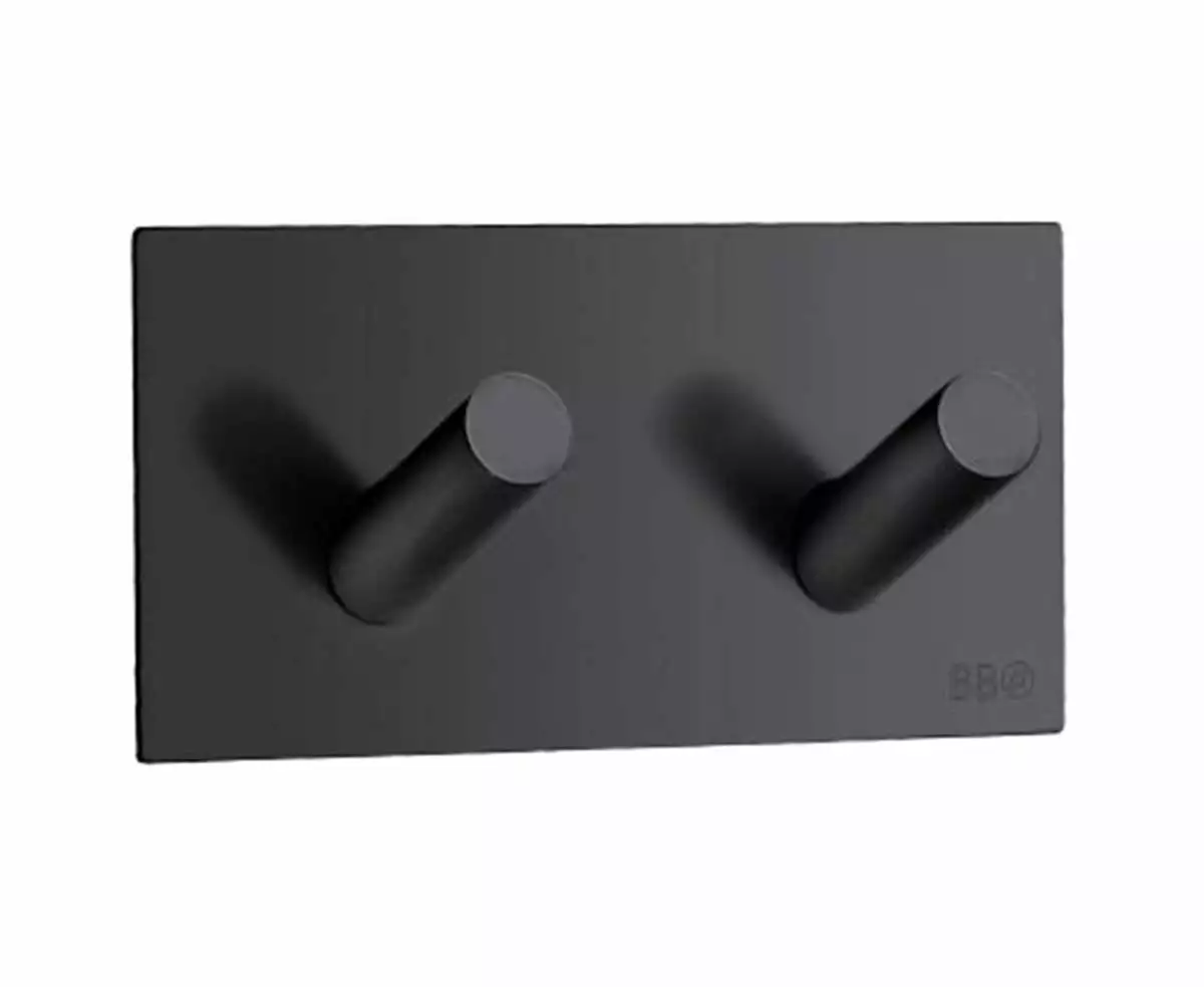 Selvklebende dobbel designkrok med plass til to håndklær. 9 cm. Finnes i flere utførelser, og som enkel krok.
