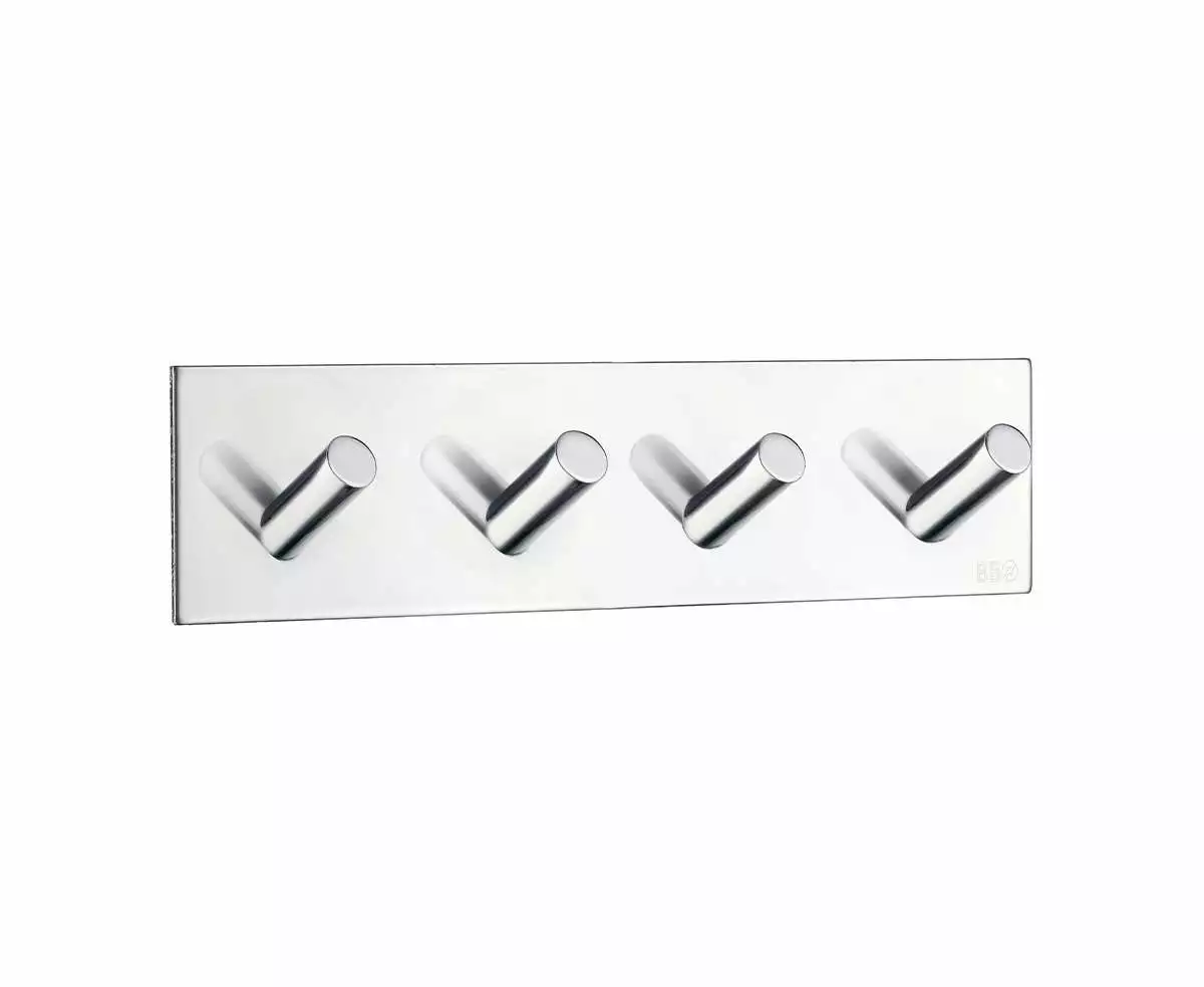 Selvklebende kroklist med fire kroker. 18 cm. Finnes i flere utførelser, og som enkel og dobbel krok.