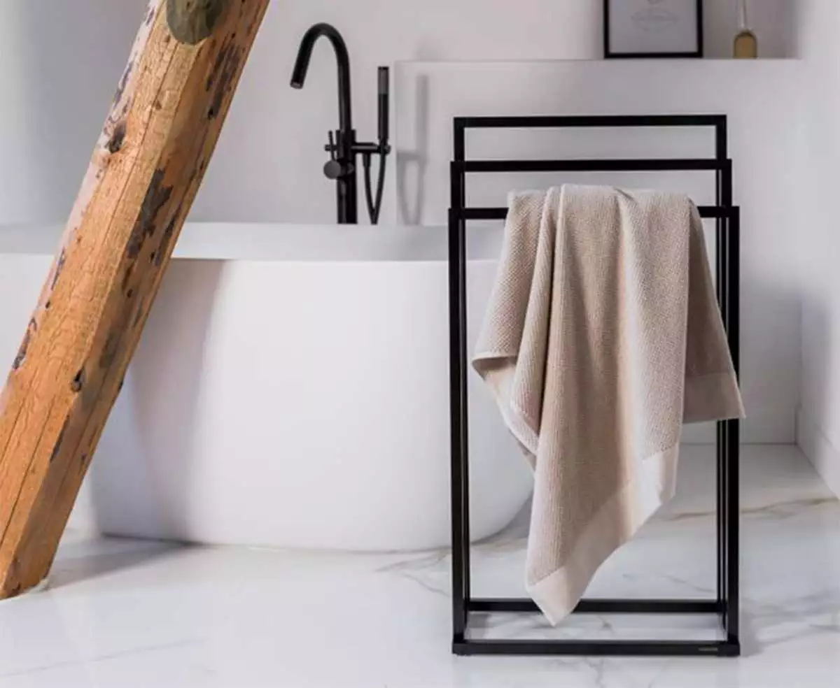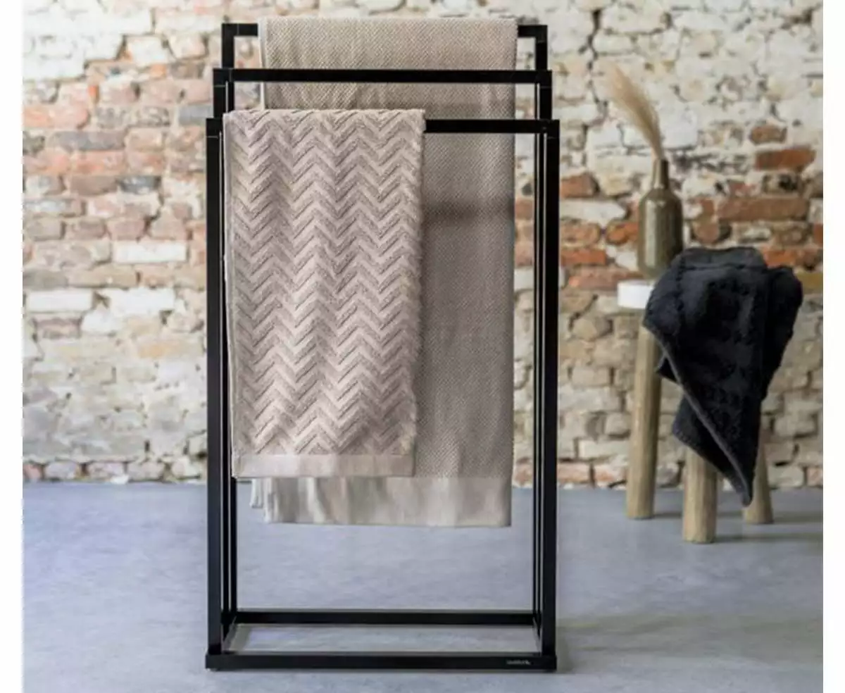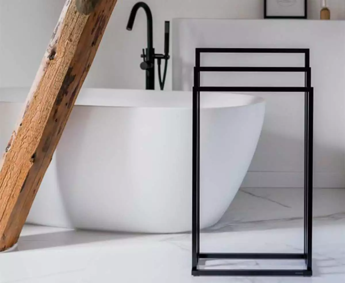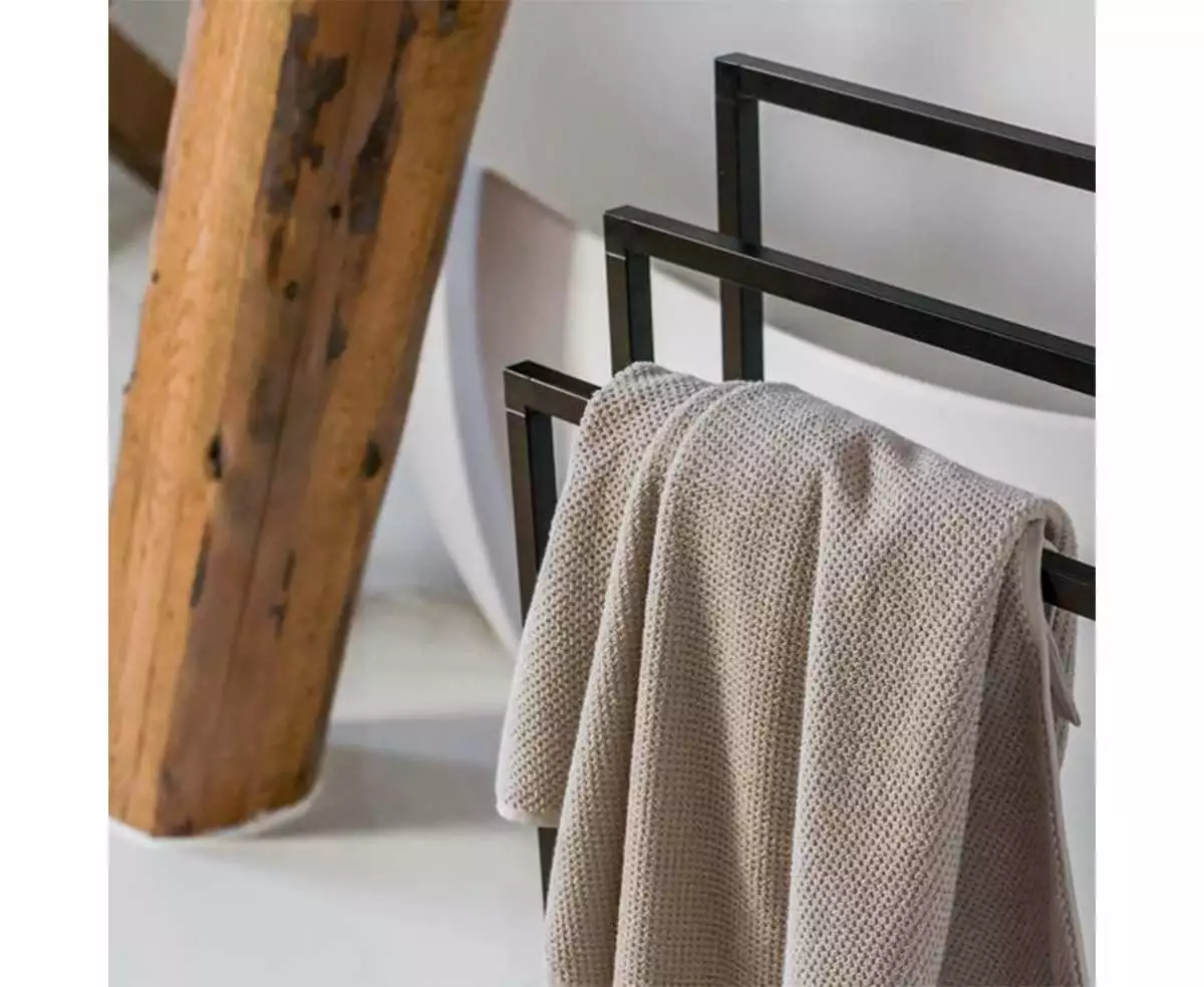 Frittstående håndklestativ i sort matt med tre stenger. Stativet rommer opp til 3 håndklær. Finnes også i krom.
