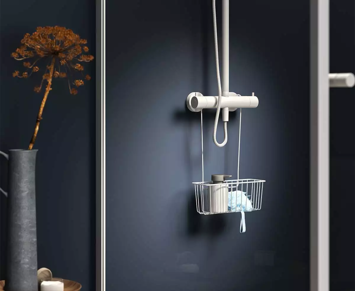 Praktisk enkel dusjkurv for enkel organisering av dusjprodukter. Enkel montering hvor kurven festes på dusjbatteriet. Tilgjengelig i flere farger. Finnes også i dobbel med to dusjkurver.