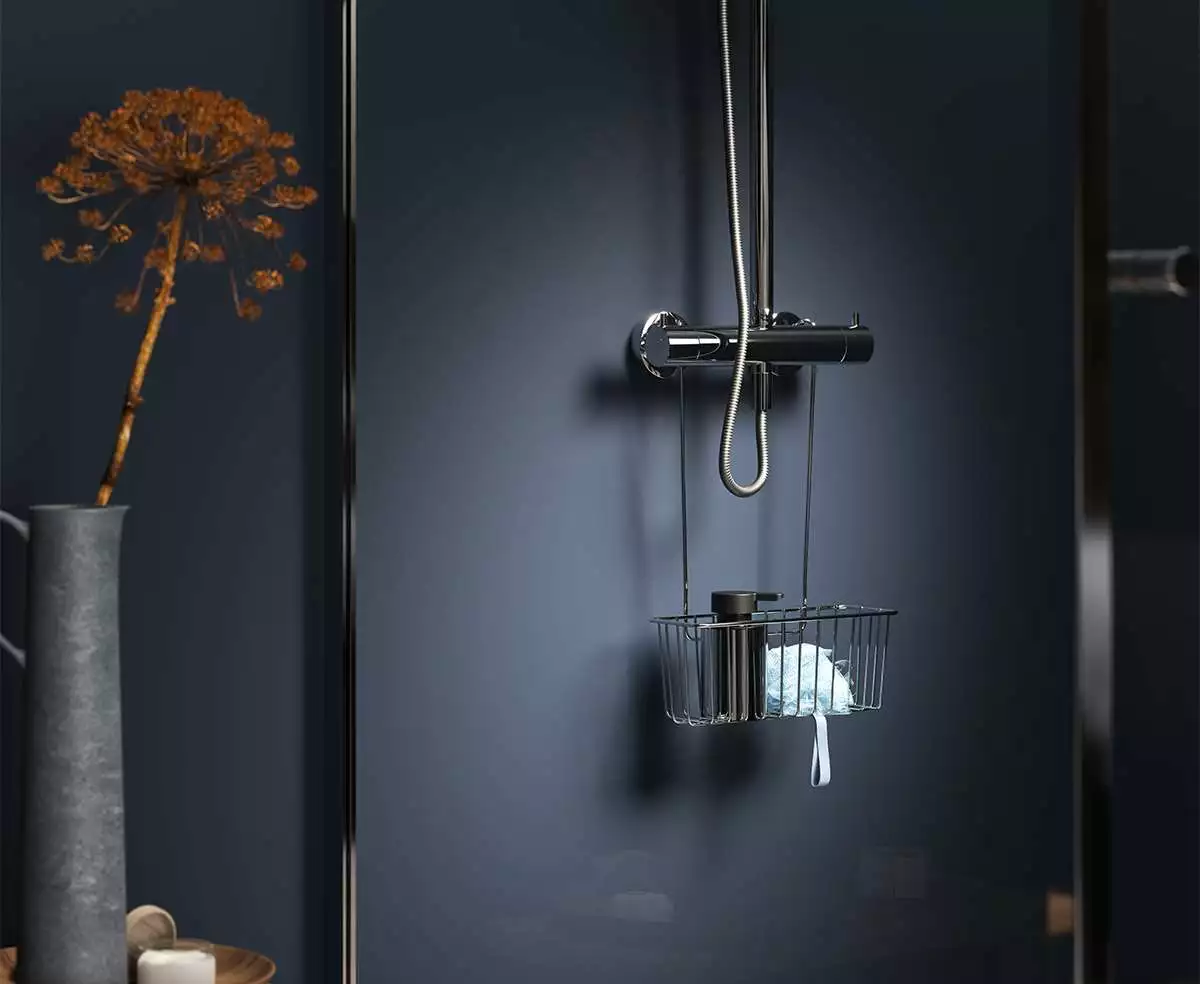 Praktisk enkel dusjkurv for enkel organisering av dusjprodukter. Enkel montering hvor kurven festes på dusjbatteriet. Tilgjengelig i flere farger. Finnes også i dobbel med to dusjkurver.