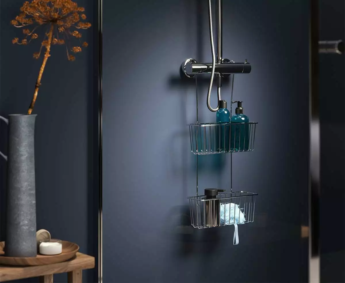 Praktisk dobbel dusjkurv for enkel organisering av dusjprodukter. Enkel montering hvor kurven festes på dusjbatteriet. Tilgjengelig i flere farger, Finnes også i enkel med én dusjkurv.