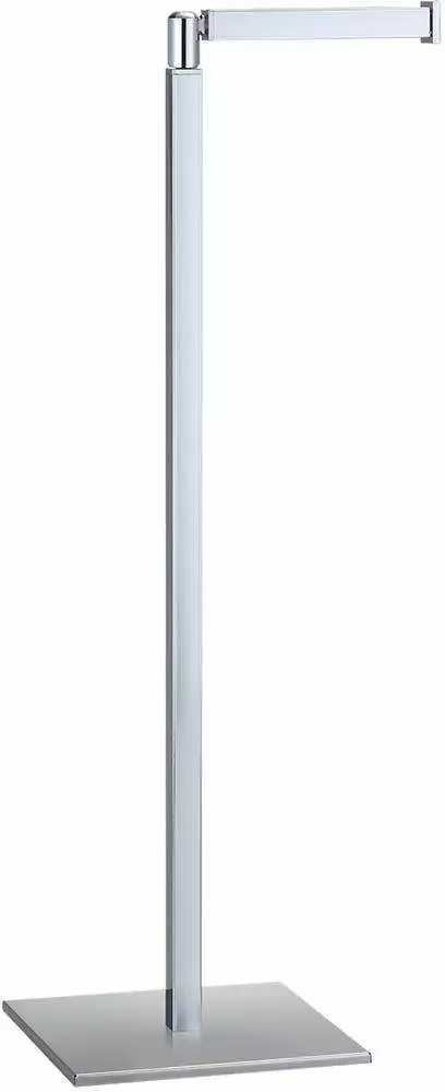 Frittstående toalett- og reserverullholder med firkantet fot. Finnes i to forskjellige utførelser.