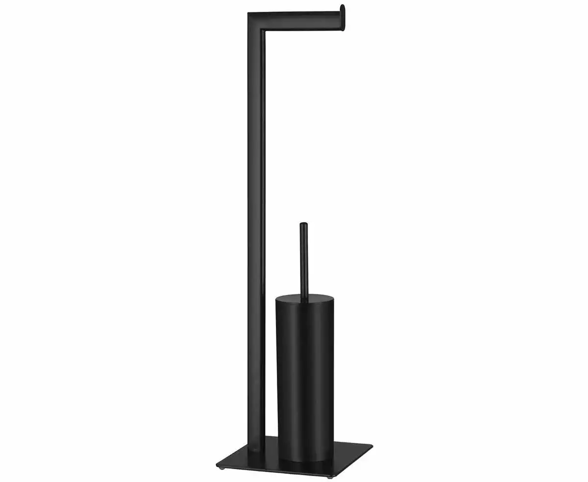 Elegant toalettrullholder og toalettbørste i trendy mattsort design.