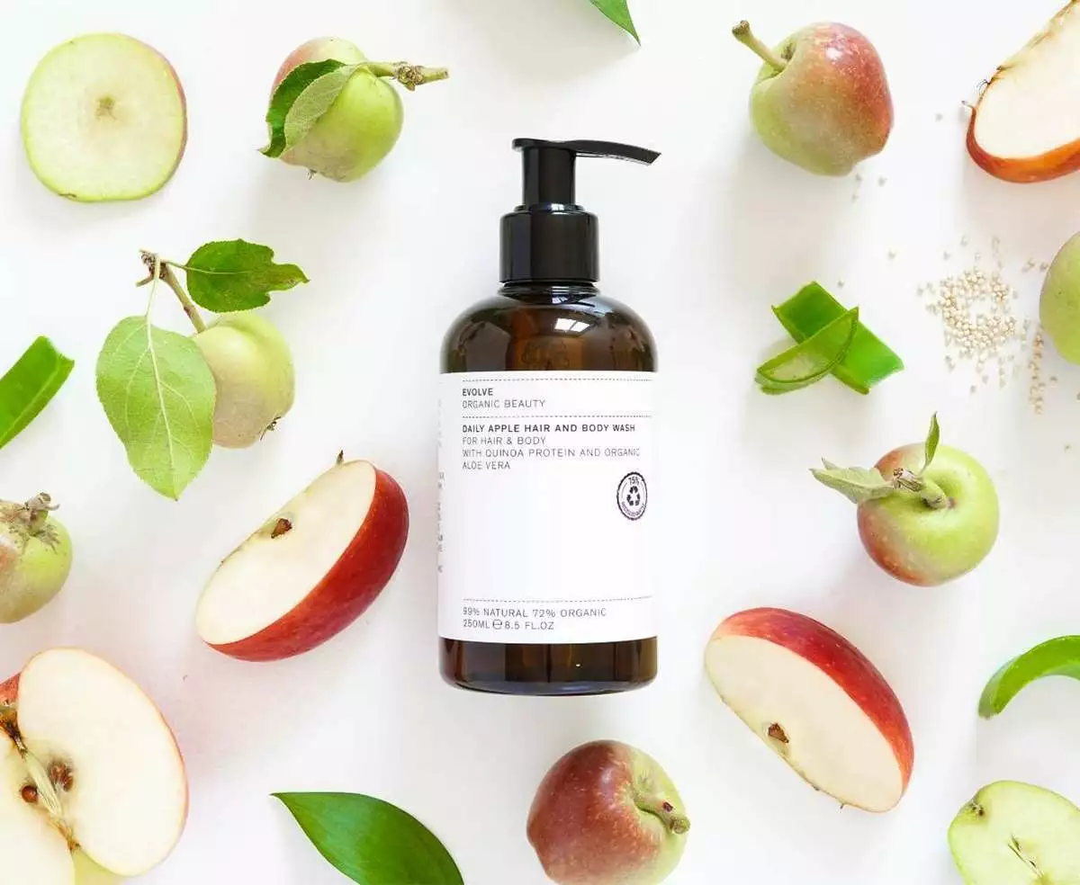 - Den fruktige Evolve Daily Apple Hair & Body Wash er skånsom nok for daglig bruk, slik at huden blir myk og håret skinnende