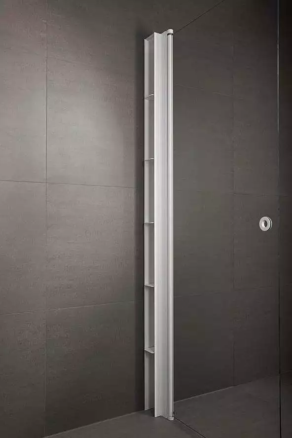 Pile er en dusjoppbevaringsløsning som som integreres i veggprofilen til dusjhjørnene LINC Angel og LINC Niagara. Velg mellom blank, hvit eller børstet profil.