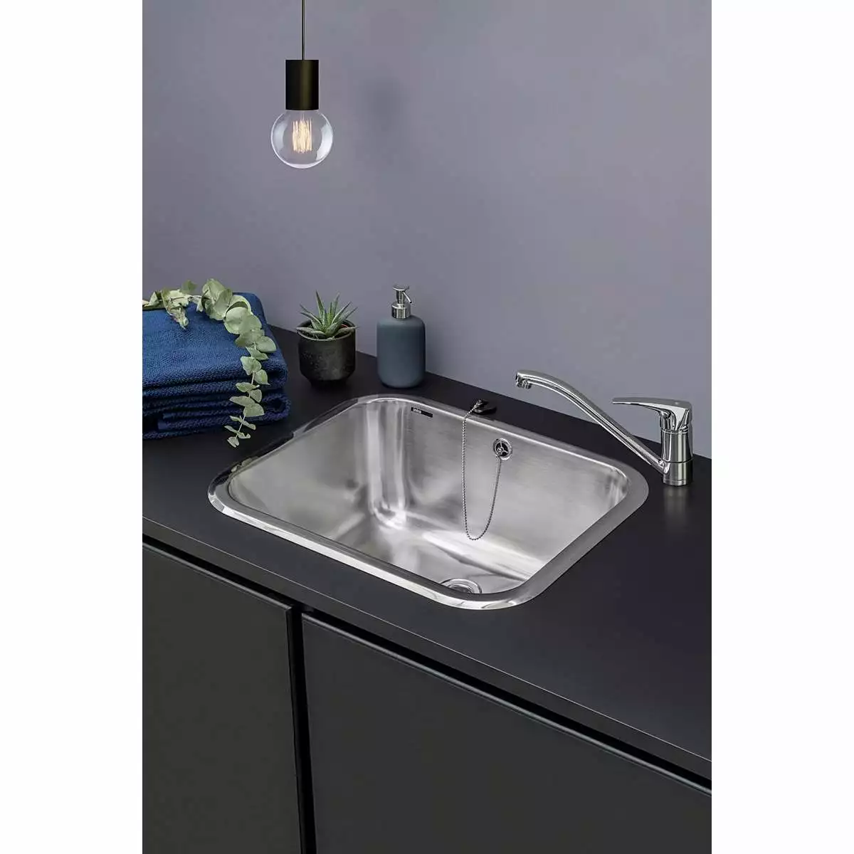 Vaskekar leveres med festeklips og 1 1/4″ ventil med plugg, kjede og overløp.I rustfritt stål for nedfelling i benkeplate. Det kan tilkomme fraktgebyr. I tilfelle vil butikken informere deg om dette når de kontakter deg