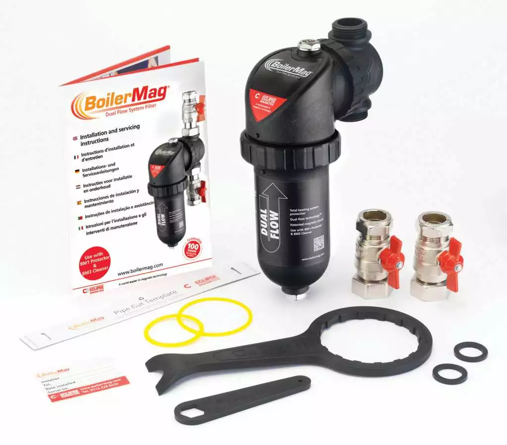 Det ultimate magnetfilteret for varmeanlegg til privat bolig. Magnetfiltrering er den mest effektive metoden for å fjerne jernholdige partikler i ditt vannbårne varmeanlegg. Magnetfilteret kan monteres både på nye og eksisterende anlegg, men for optimal utnyttelse anbefales det å montere et magnetfilter før oppstart. Magnetfilteret kombineres med X100 korrosjonsinhibitor. For eldre anlegg skal X400 systemrens benyttes i forkant. Løsningen opprettholder god sirkulasjon, optimal varmeoverføring og kan forlenge levetiden på anlegget ditt. Det kan tilkomme fraktgebyr. I tilfelle vil butikken informere deg om dette når de kontakter deg