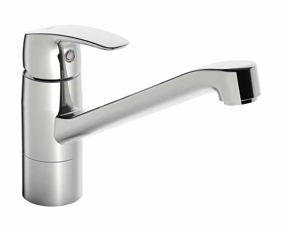 Kjøkkenkran med svingbar tut. Tutens svingradius er forhåndsinnstilt på 120° (kan begrenses til 40° – 80°). Det er også innebygd begrensninger for maksimal vannmengde.