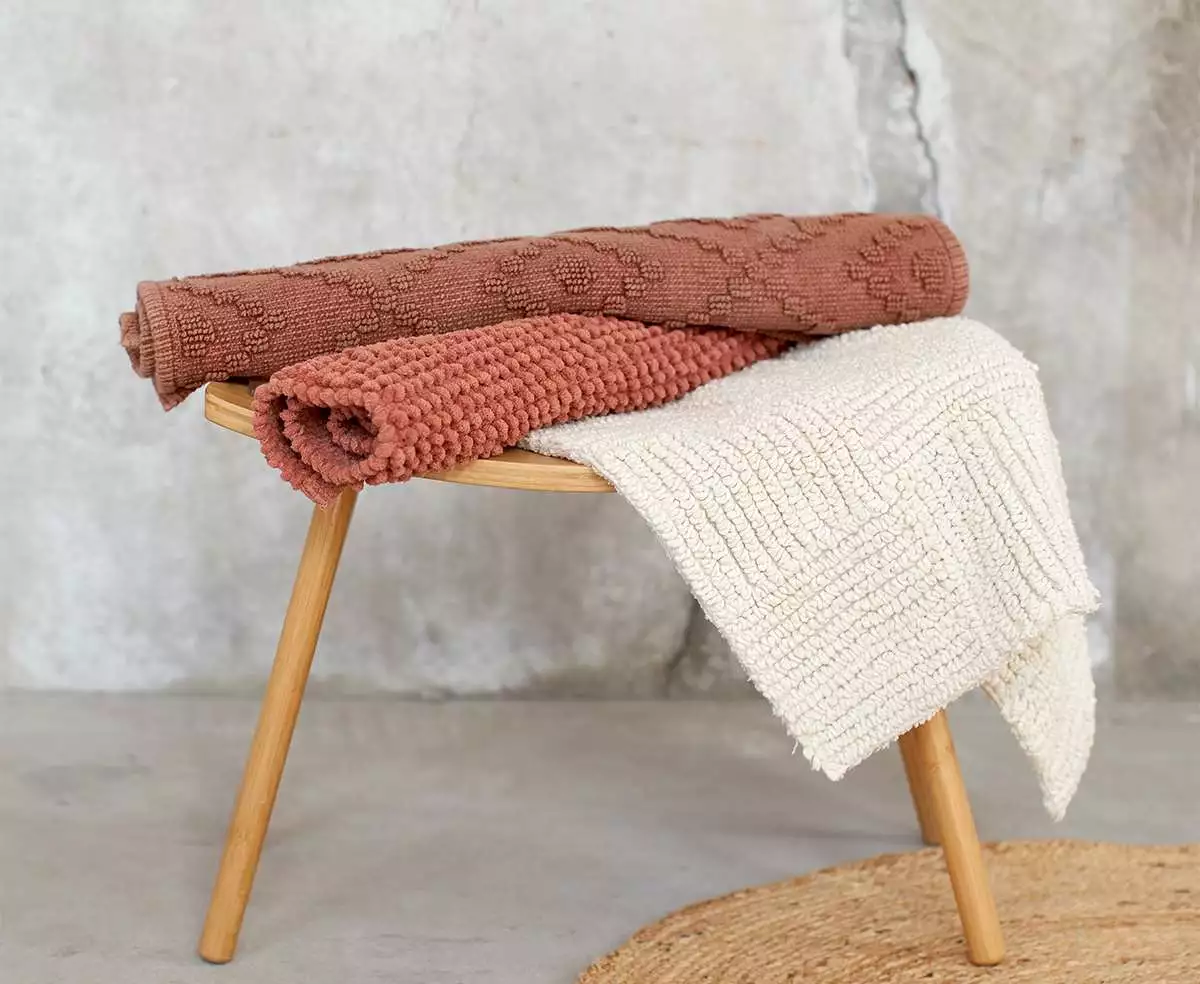 Lekker baderomsmatte i bomull som er både moteriktig og funksjonell. Baderomsmatten ser ikke bare fantastisk ut, men den er også høyabsorberende og holder seg stødig på plass. Aztec baderomsmatten gir baderommet ditt en varm og fresh feeling. Badematten kan fås i flere ulike farger.