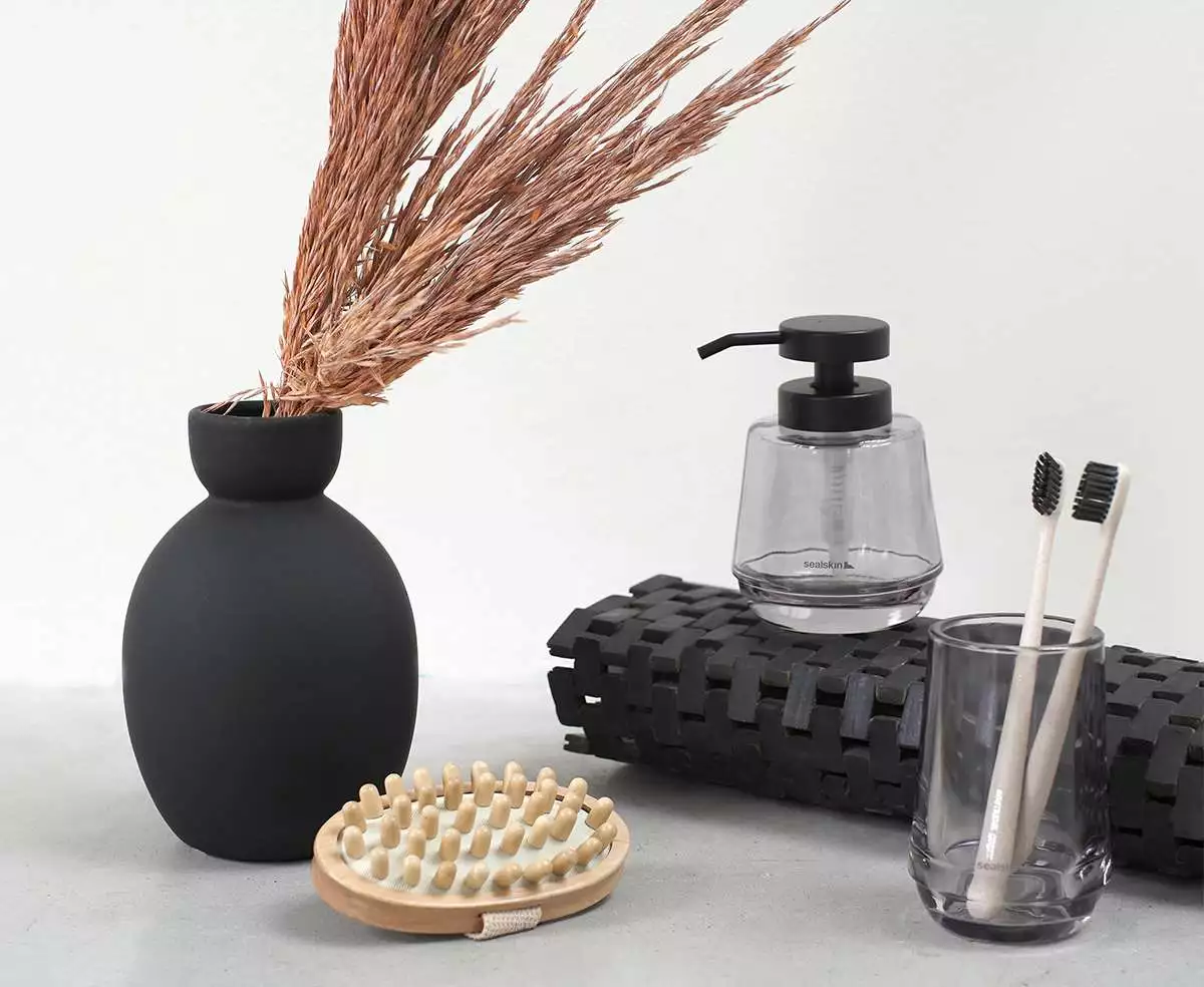Badematte i bærekraftig teakmateriale med anti-skli. Lekent mønster med et luksuriøst vintage-look. Sort finish.