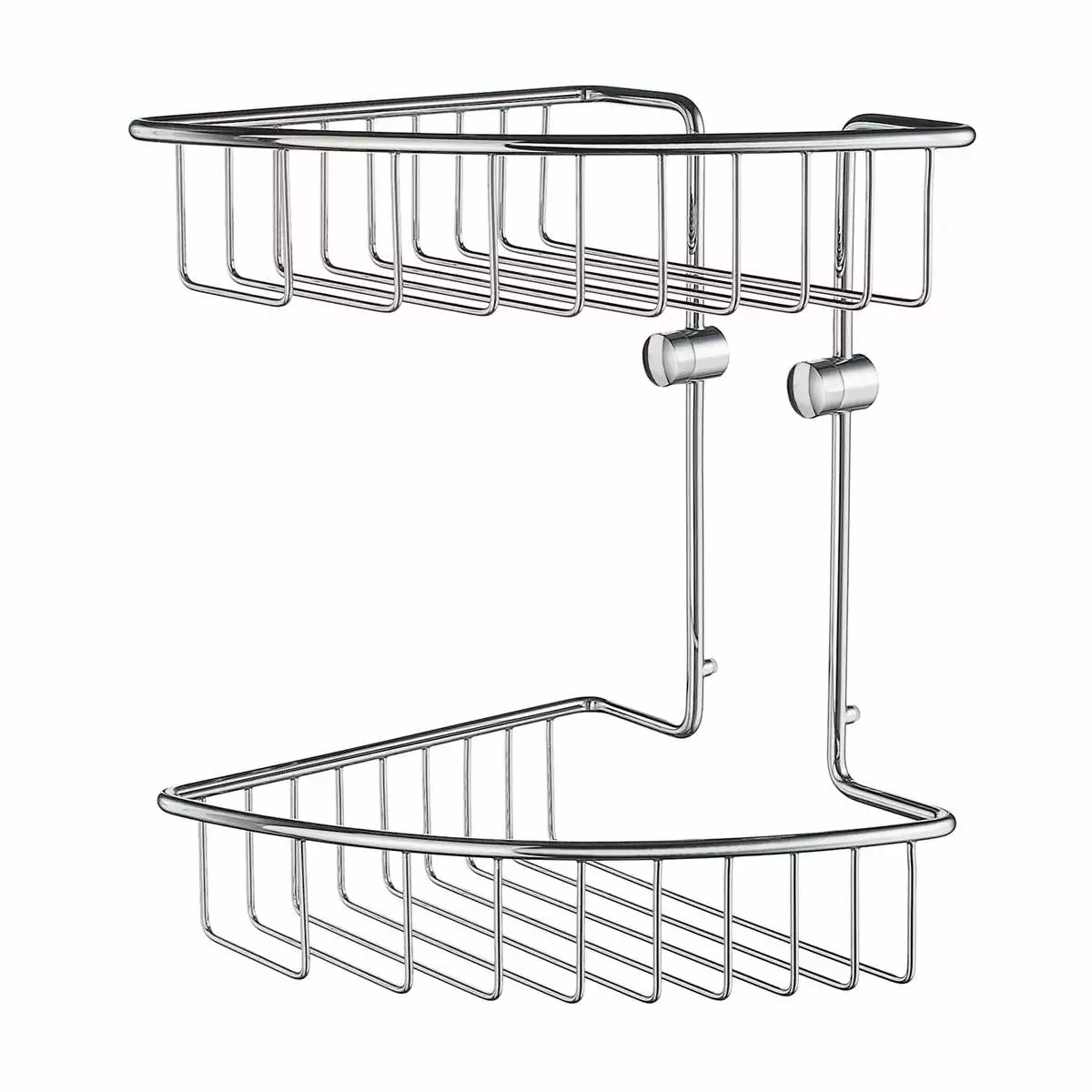 Dobbel dusjkurv for hjørne. Smedbos dusjkurver ruster ikke, da de er lagd i massiv messing. Skjult innfestning. Passer til Smedbos tilleggskrok.