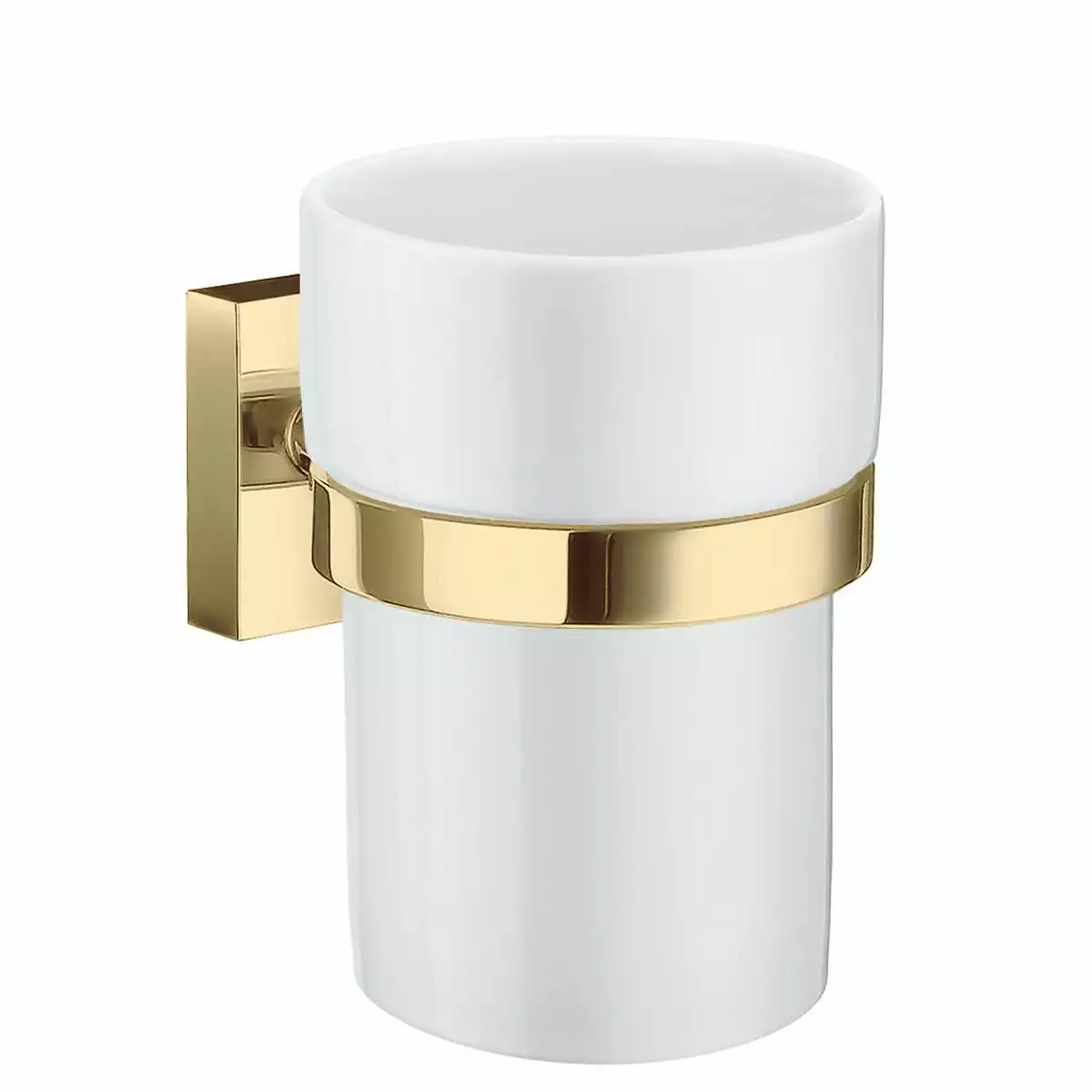 HOUSE holder med tannglass i porselen. Skjult innfestning. Monteres ved hjelp av skruer og lim.