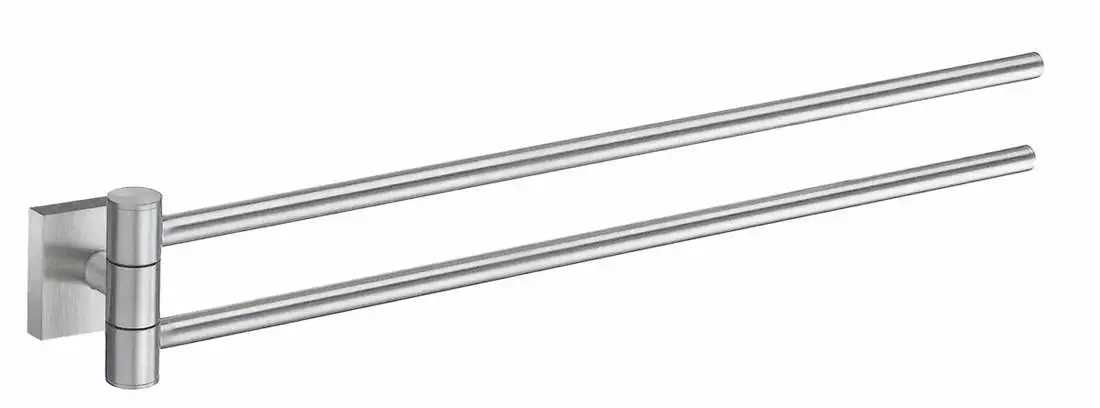 HOUSE svingbar håndklestang med skjult innfestning. Ved tyngre belastning, anbefales dobbelstang 3364 med 2 veggfester. Total lengde 440 mm.