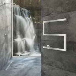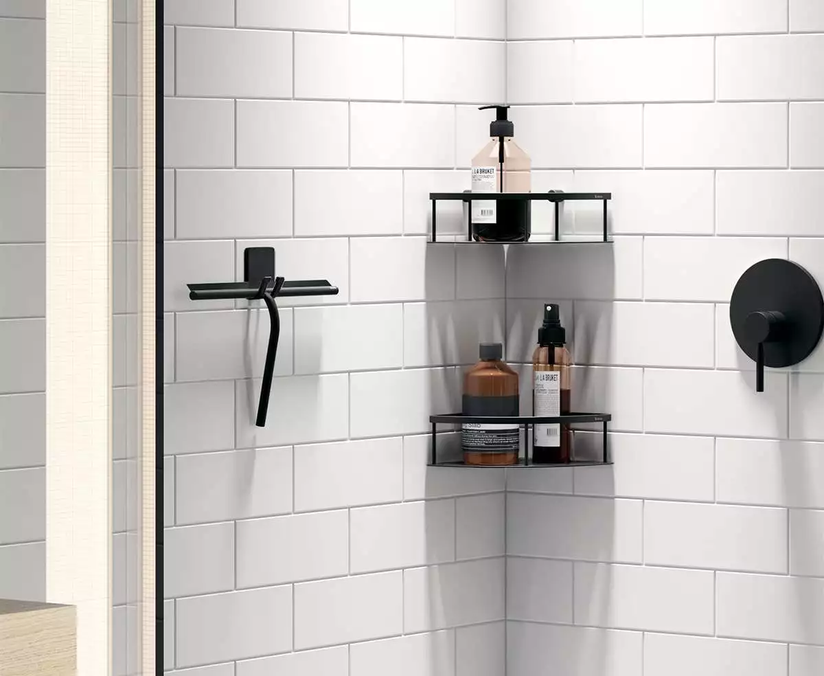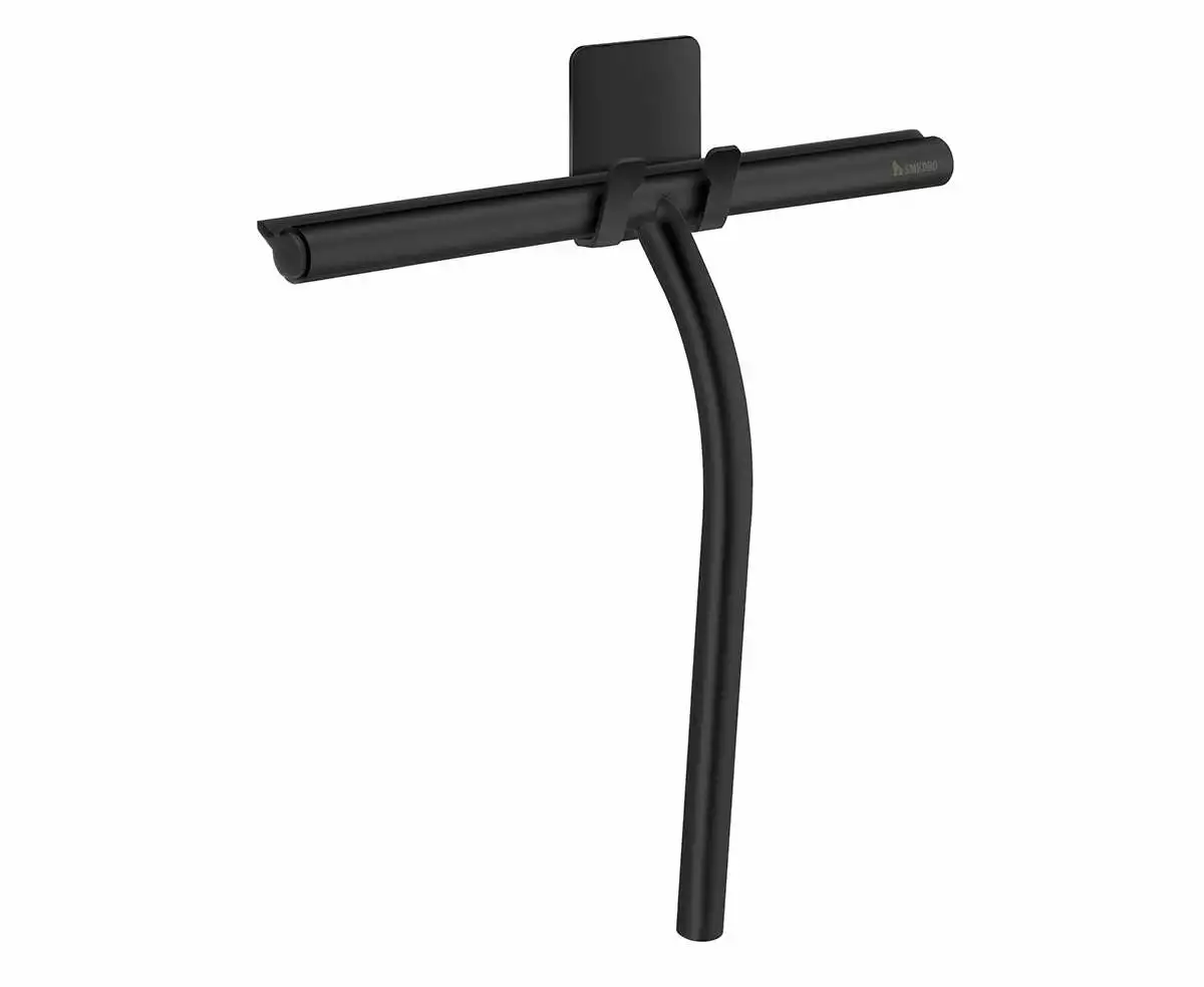 Sort dusjnal i rustfritt stål med blad i silikon. Inkludert selvklebende holder. 24×21 cm.