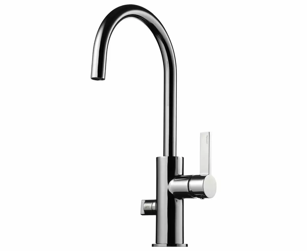 Kjøkkenkran i stilrent design med ettgrepshendel og med avstengning for oppvaskmaskin. Høyde 423 mm. Finnes i flere ulike overflater.