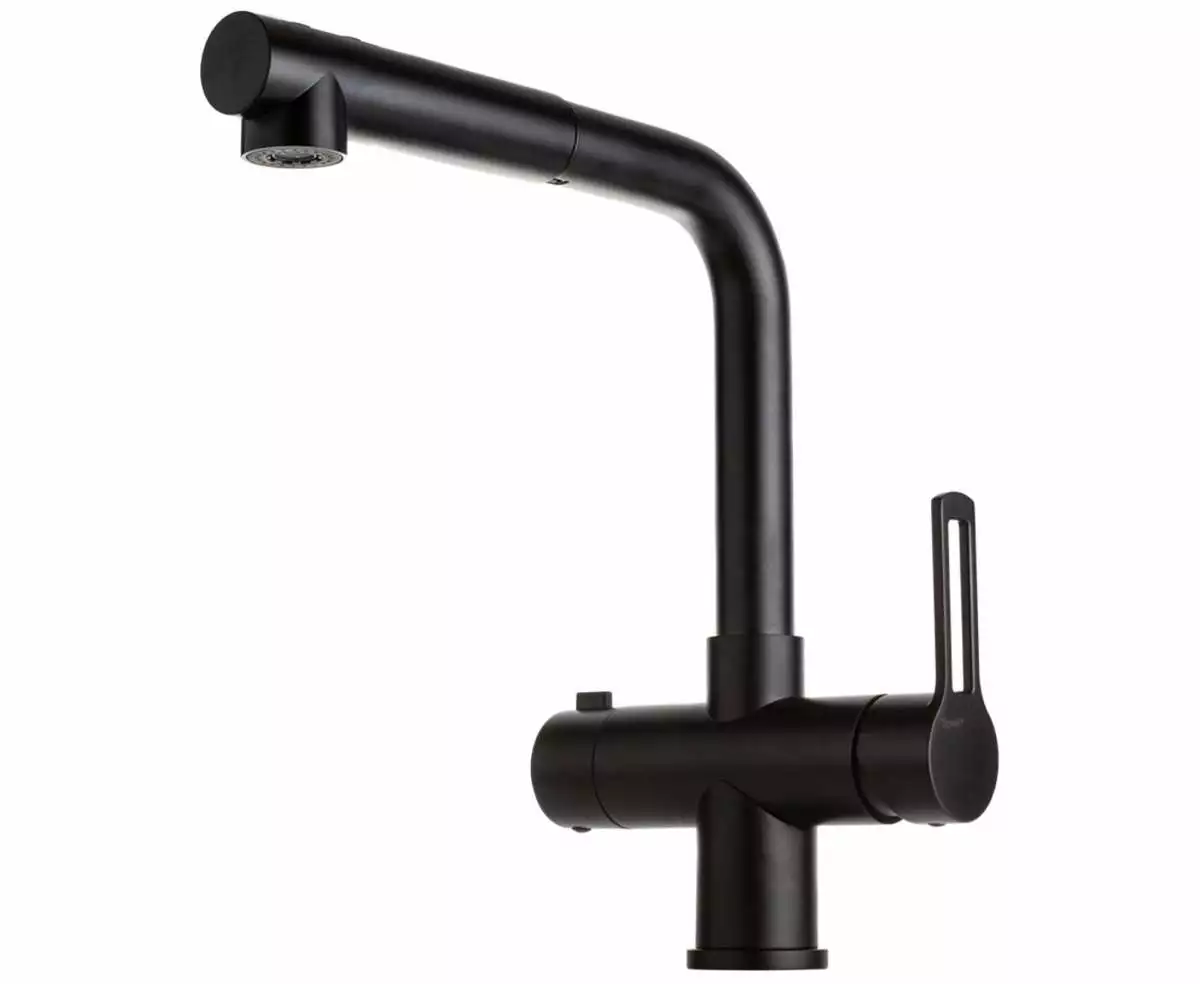 - Uttrekkbar tut og to-strålig hånddusj som forenkler daglig rengjøring og spyling av kasseroller. En rask håndvask av kaffekruset har aldri vært enklere