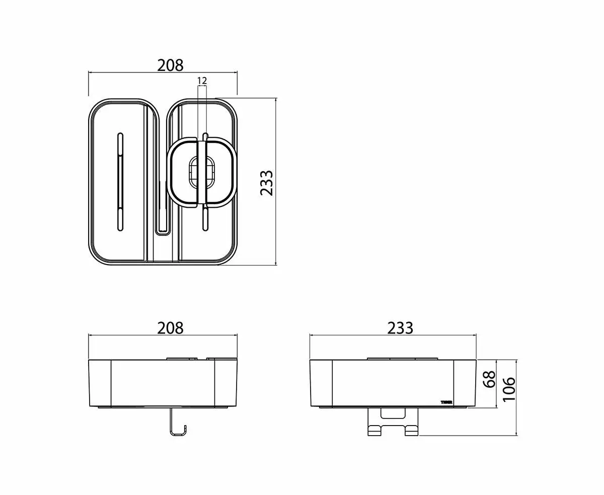 Clip on dusjkurv i plast med silikonbeskyttelse for oppbevaring på badet. En praktisk og smart løsning hvor flasker og sjampo kan oppbevares i den våte delen, mens håndkle, klokker og mobil er på et trygt sted på den tørre delen. Kurven festes på en 6-8 mm tykk glassvegg ved bruk av en sterk klemme. Finnes i forskjellige farger.