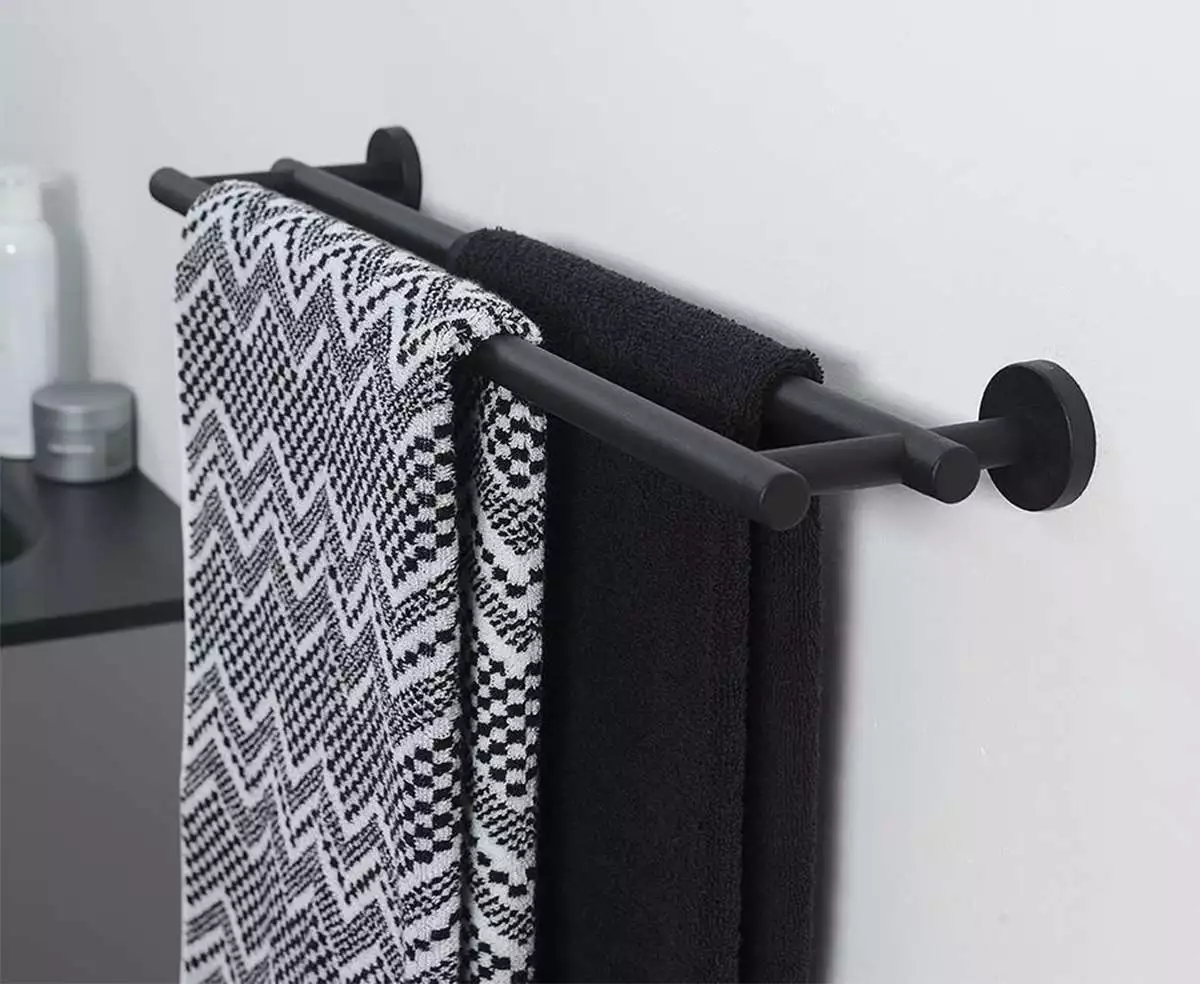 Boston dobbel håndklestang i rustfritt stål. Boston er en serie fra Tiger som er klassisk og stilren. Den har en rekke produkter som dekker de behov du måtte ha på ditt baderom. De fleste produktene kan limes med TigerFix 1, et to-komponent lim som du lett kan montere selv. Tigerfix tåler også å monteres i dusjsonen.