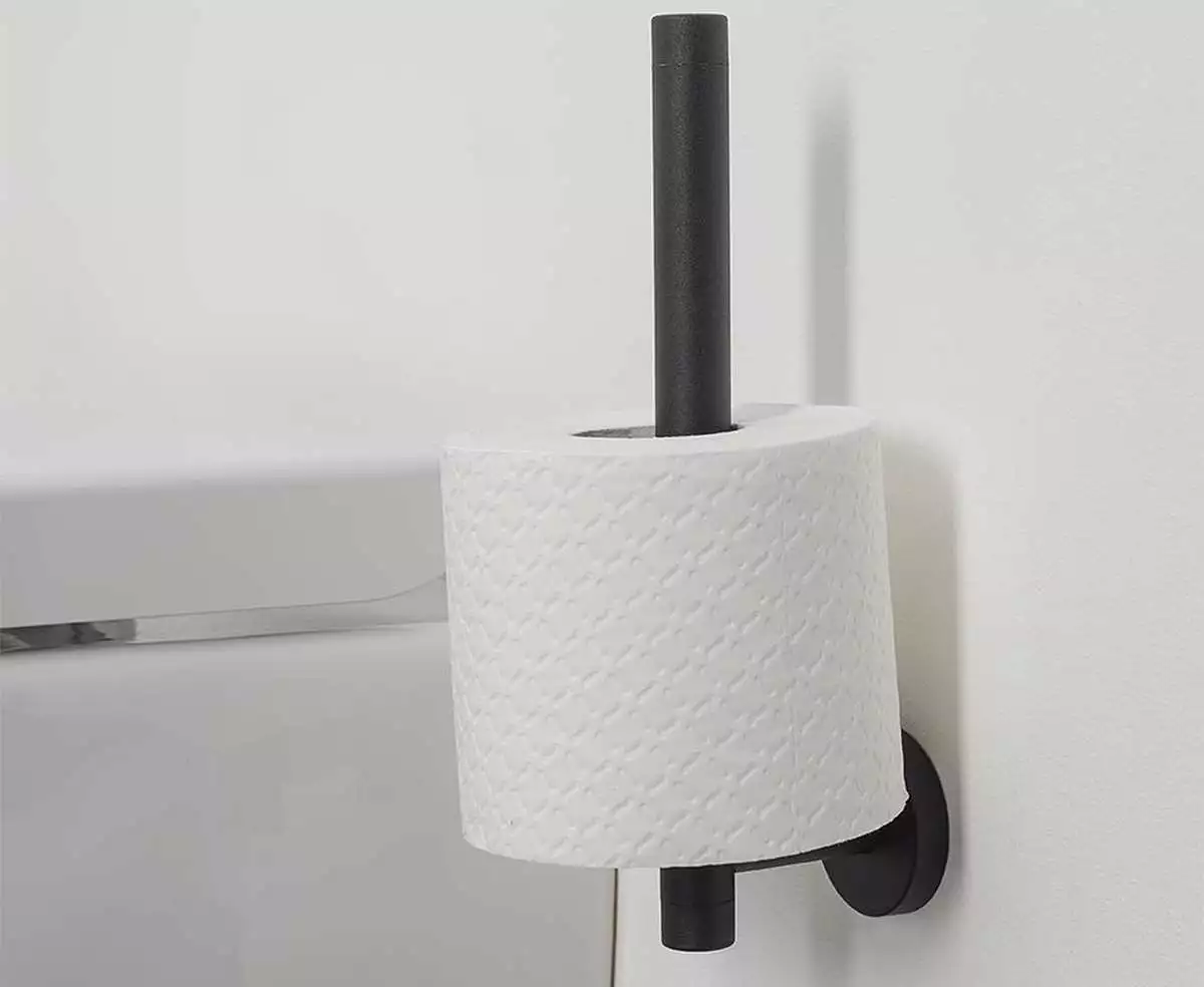 Reserverullholder til toalettrull. Enkel montering som unngår hull i vegg. Kan monteres med Tigerfix 1.