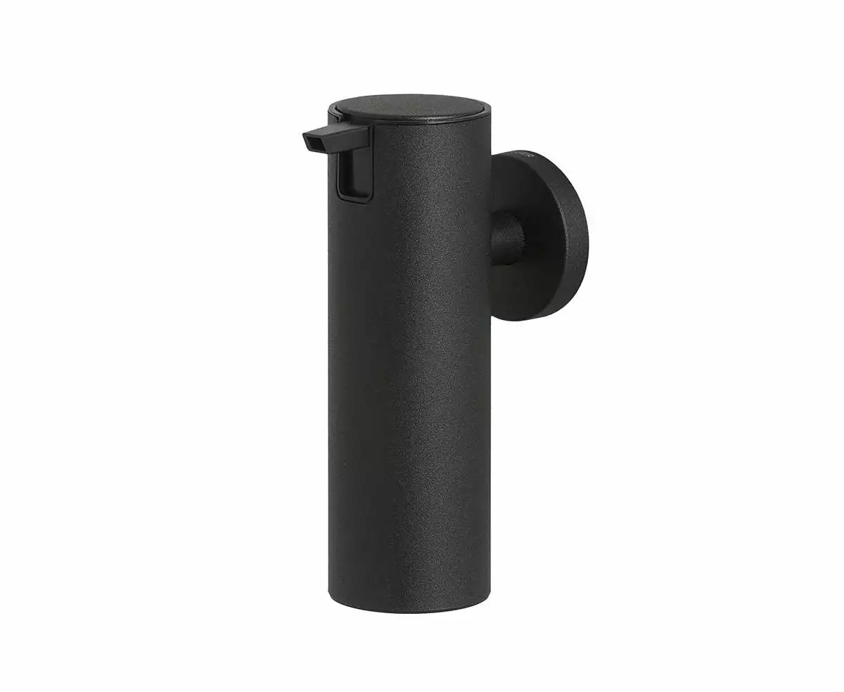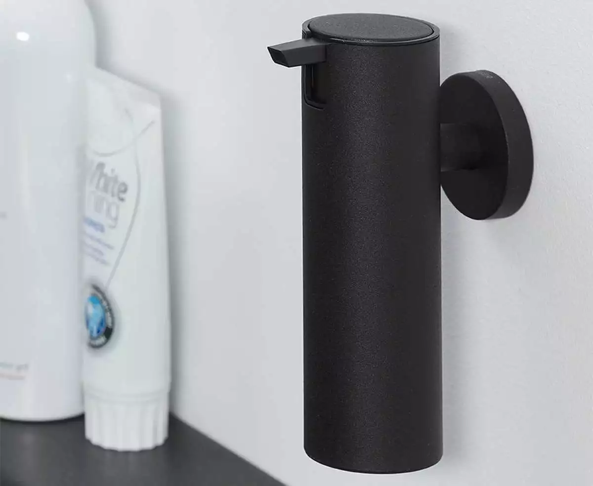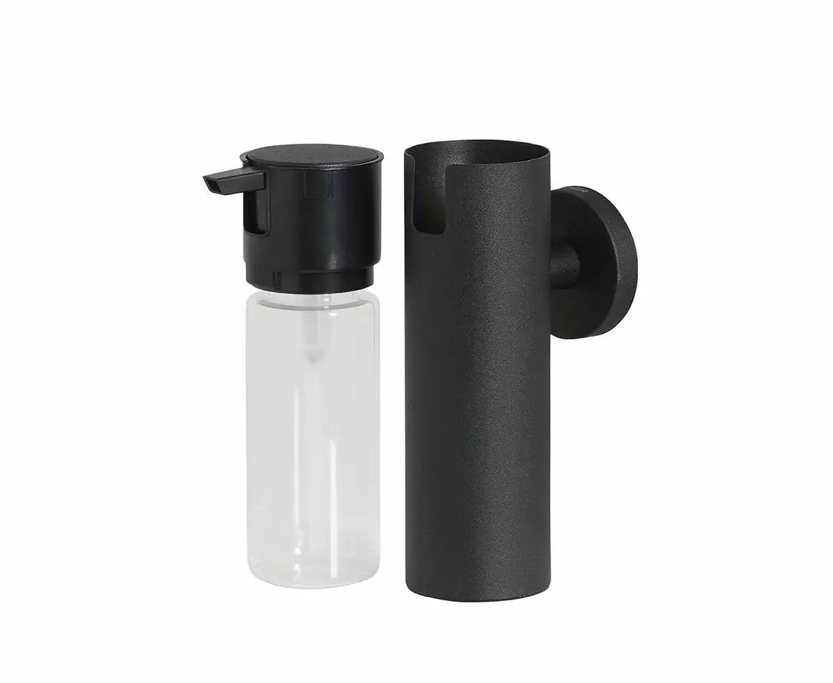 Såpedispenser i sort mattlakkert rustfritt stål. Kan monteres med Tigerfix 1.