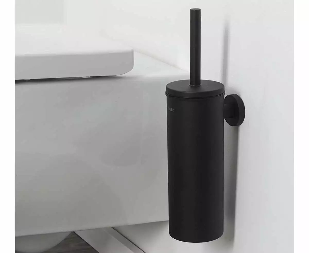 Toalettbørste for veggmontering i sort mattlakkert rustfritt stål. Kan monteres med Tigerfix 1, slik at du unngår hull i vegg.