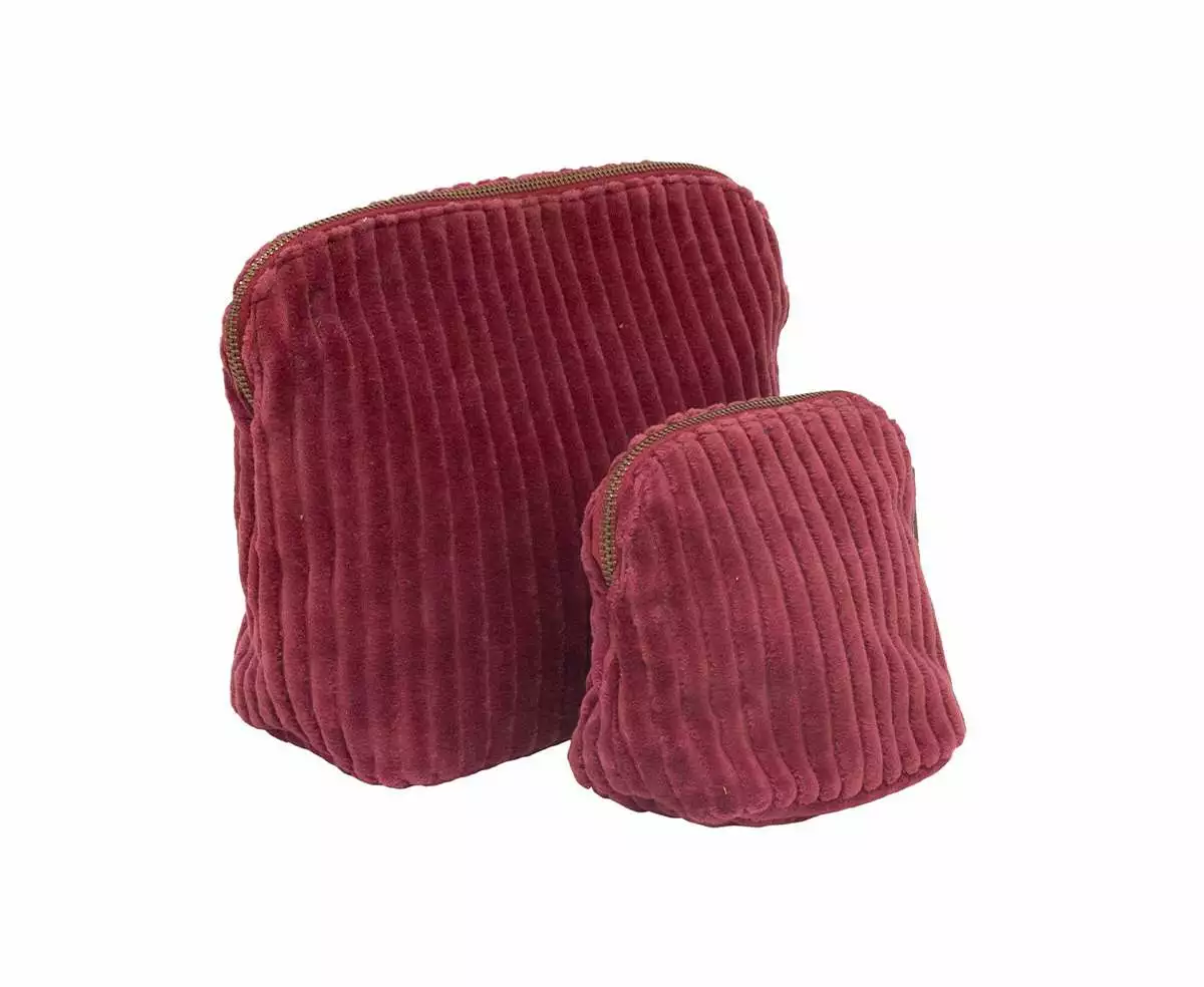 Toalettmappe i bredstripet kordfløyel i 100% bomull. En trendy og lekker toalettmappe som passer supert i håndvesken med sminkesaker, eller fylt til randen av hverdagslige nødvendigheter. Velg mellom flere ulike lekre farger. Finnes også i en mindre størrelse.