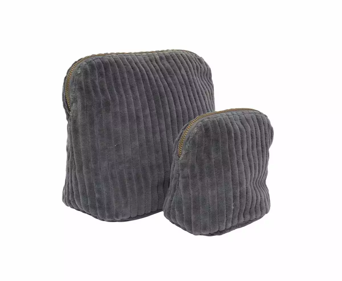 Toalettmappe i bredstripet kordfløyel i 100% bomull. En trendy og lekker toalettmappe som passer supert i håndvesken med sminkesaker, eller fylt til randen av hverdagslige nødvendigheter. Velg mellom flere ulike lekre farger. Finnes også i en mindre størrelse.
