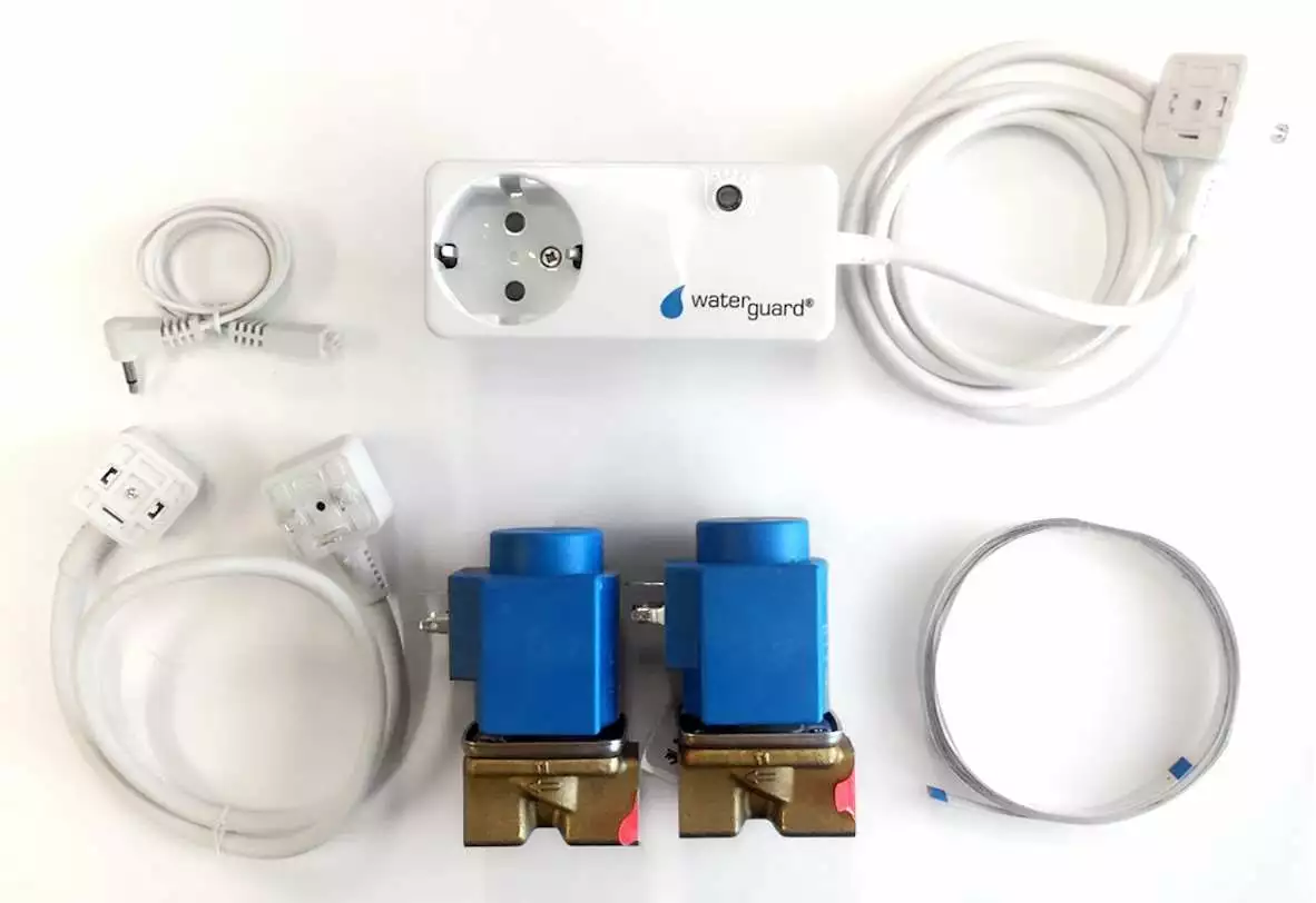 Waterguard Adapter er vår bestselger. Modellen er trådbasert og egner seg for sikring av eventuell lekkasje fra vanninstallasjoner i rom uten sluk i gulv (kjøkken, separat toalett, osv.). Løsningen er enkel å installere og krever ingen ekstra stikkontakt. Ved lekkasje kuttes strømmen til kontakten.